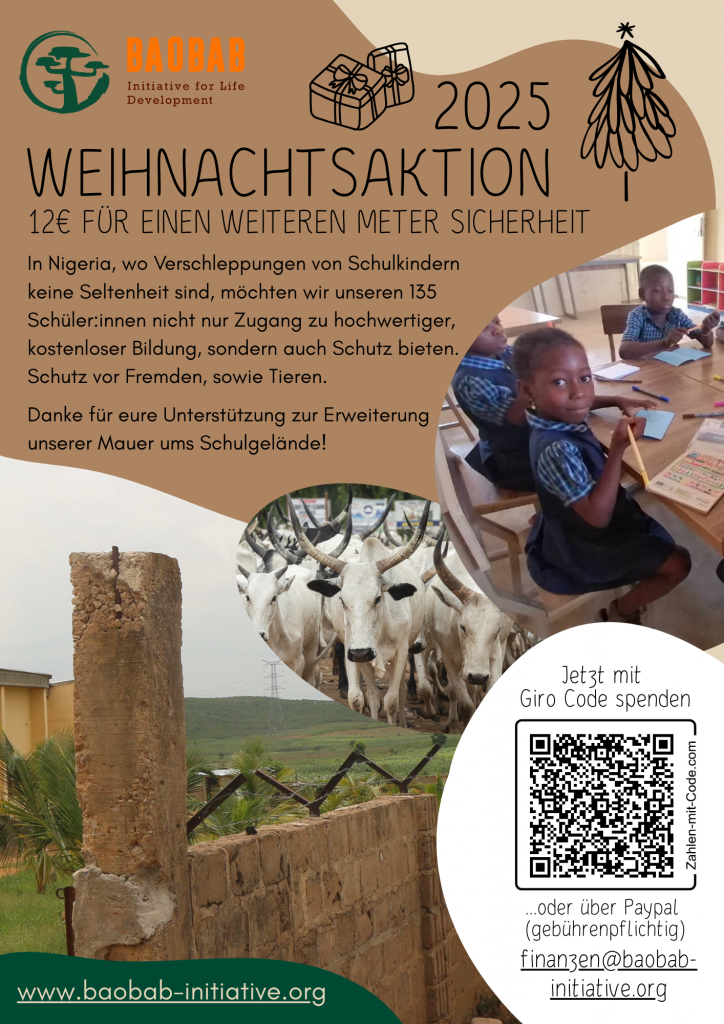 Unsere diesjährige Weihnachts-Aktion möchten wir dem Start eines ganz besonderen Projekts widmen: Ab sofort kann man Pate eines Schulkindes am Baobab-Bildungszentrum werden!
